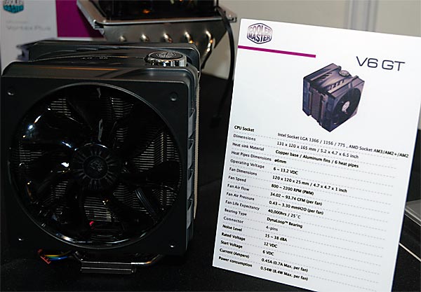 L'ultimo modello é il V6 GT, evoluzione del V6, dotato di un corpo centrale in alluminio attraverstao da 6 heatpipes, raffreddate ai lati da due ventole da 120mm e 800-2200 rpm, con una portata che raggiunge i 94CFM ciascuna al massimo regime di rotazione. Questo dissipatore inoltre possiede una serie di led nella parte centrale esterna che con apposito pulsante cambiano colore a nostro piacimento.