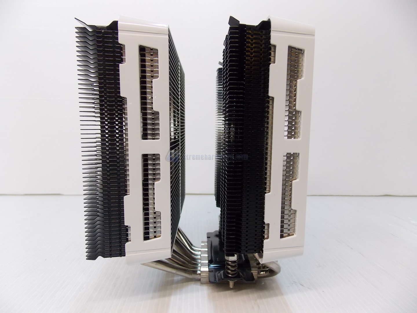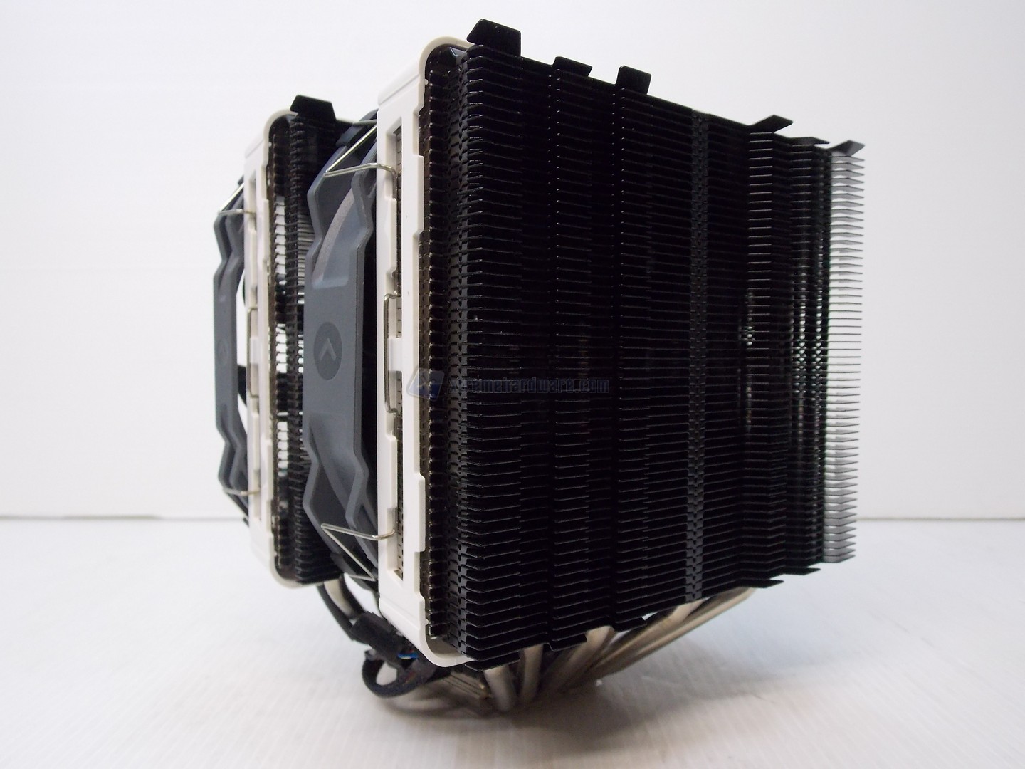 Il profilo frontale è perfettamente orizzontale ed è evidente la chiusura centrale delle alette, ed il meccanismo di saldatura sulle heatpipes. È proprio questo infatti un elemento pubblicizzato dal produttore, che prende il nome di "DirectCompress™ Soldering": incrementa la superficie di scambio tra le heatpipes e le alette del radiatore, conferisce infatti un’Area maggiore del 10% rispetto alla saldatura tradizionale e quindi, ovviamente, una superficie maggiore implica una dissipazione del calore più immediata.