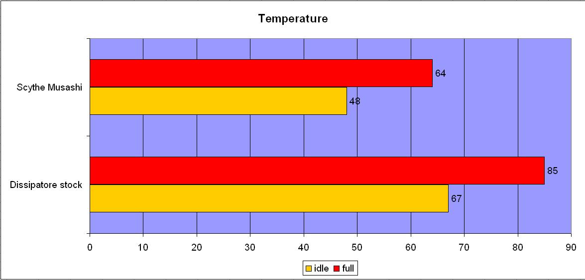 Si metterà alla prova lo  Scythe Musashi  della Radeon HD 4870  confrontando le temperature  in idle e full load. La temperatura è misurata trenta minuti dopo l'inizio della prova, e al minimo carico. Inoltre, verrà utilizzata la pasta termica fornita con il dissipatore.