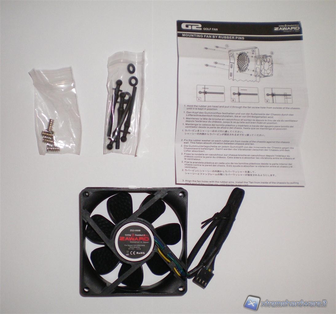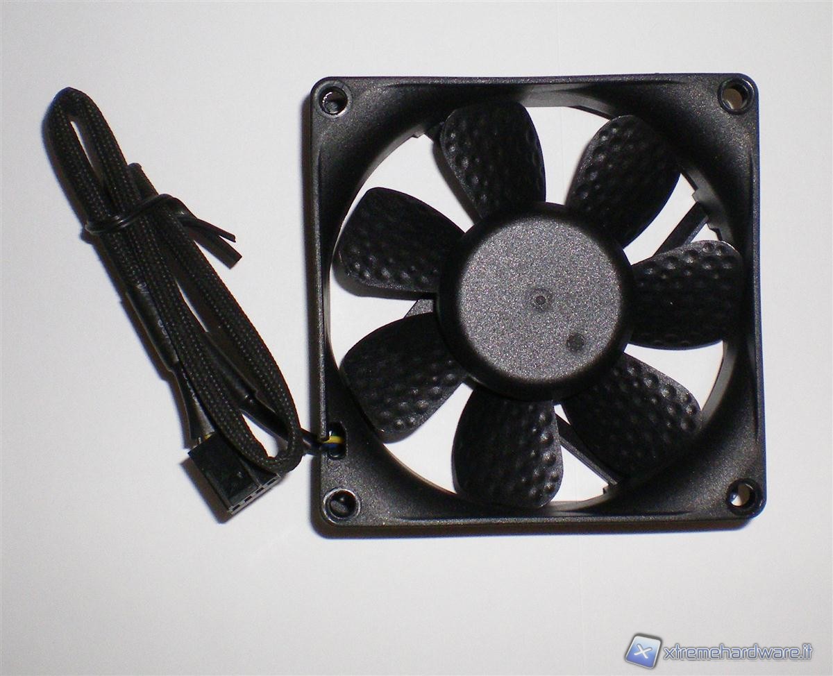 La ventola ha colore nero ed è dotata di cavo di tipo sleeve con attacco 3pin. Le pale hanno una particolare forma che ci ricorda proprio le palline da golf, che aiutano a ridurre le emissioni sonore durante il funzionamento.