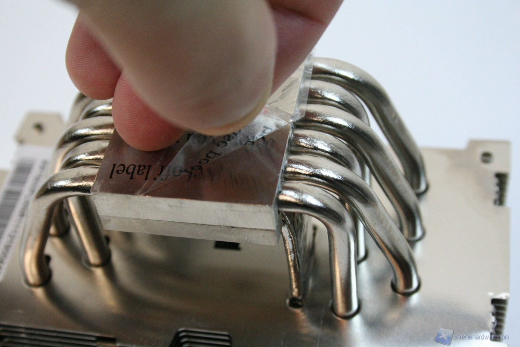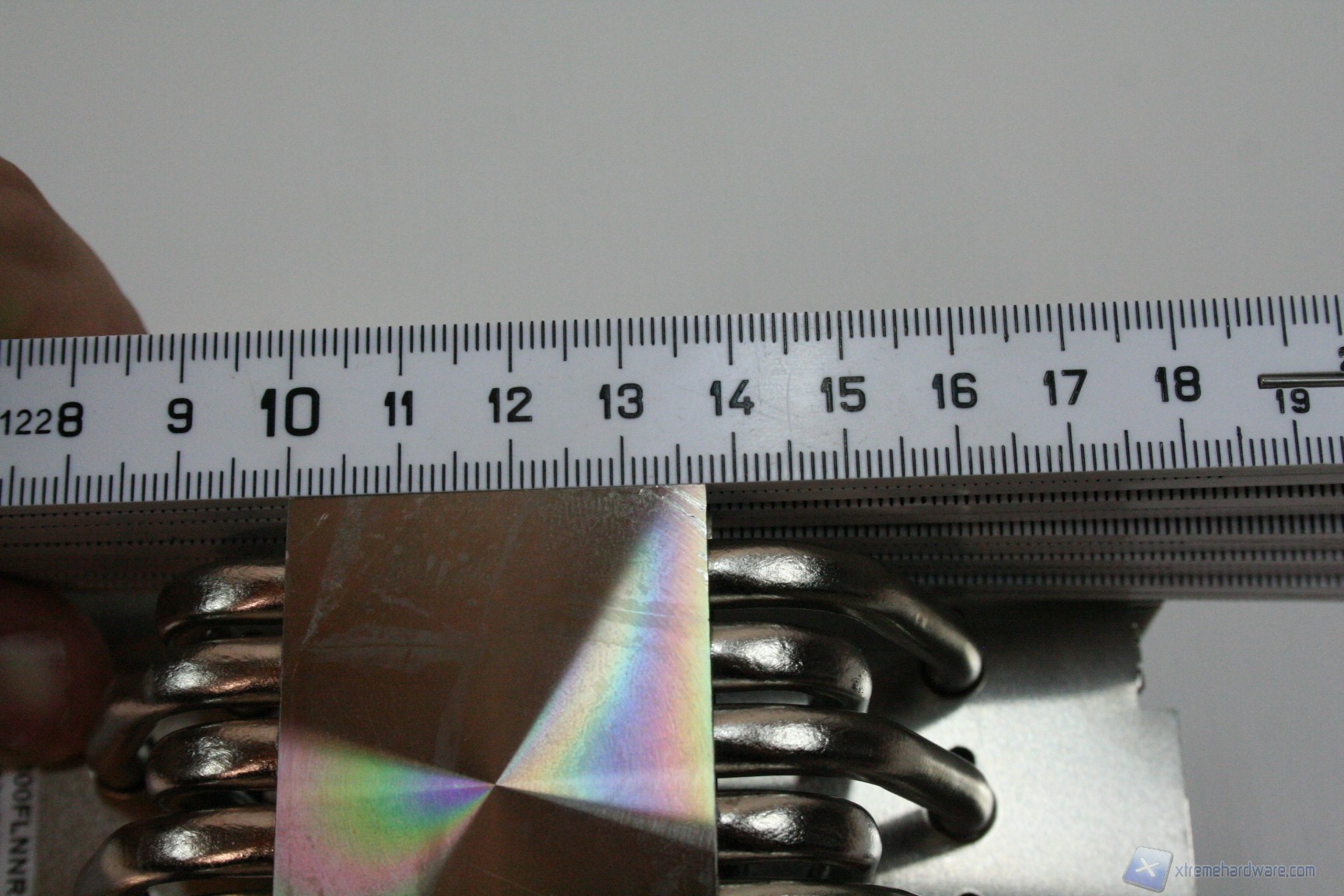 Il dissipatore presenta un’altezza del corpo dissipante principale leggermente elevata, 163cm, quindi fate attenzione all’atto dell’acquisto e controllate la compatibilità con il vostro cabinet perché potrete avere brutte sorprese. La base di contatto presenta un’ottima finitura nickelata, una forma rettangolare oltre all’assenza della curvatura centrale convessa, che generalmente veniva adottata per migliorare l’impronta di contatto della CPU nei socket 775/1155/1156/1366. Facciamo presente che sebbene il sample che abbiamo ricevuto fosse nuovo, era presente della pasta termica sotto la protezione di plastica. Qualora lo troviate anche voi è possibile che questo modello fosse stato testato per il controllo qualità. Abbiamo utilizzato delle soluzioni di pulizia Arctic Cooling, quindi vi consigliamo di dare una pulita prima dell’applicazione della vostra pasta termica.