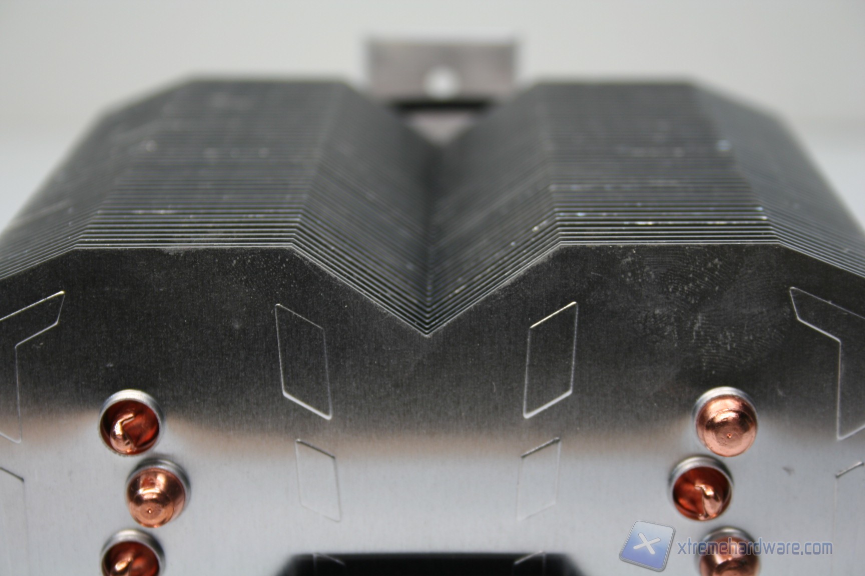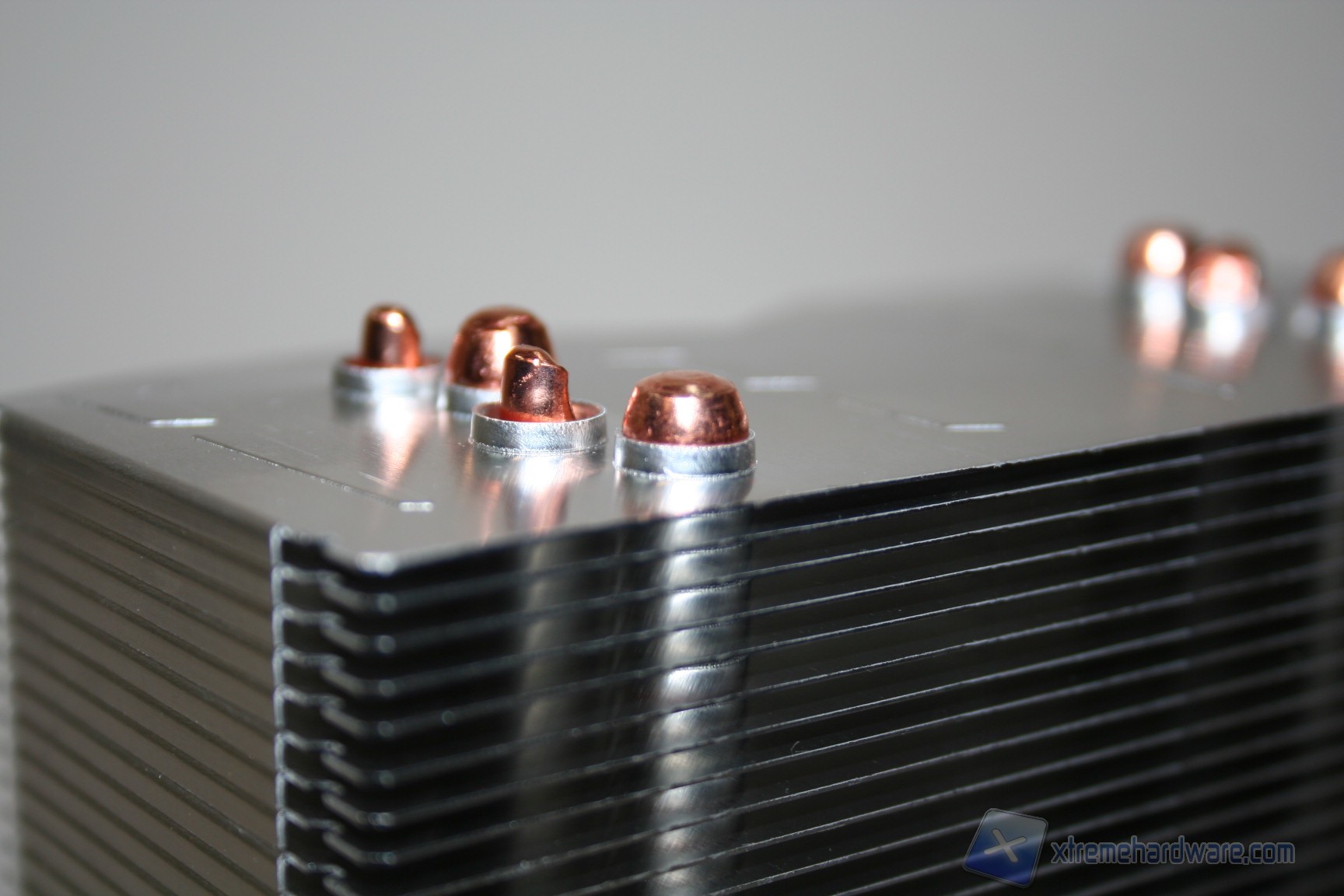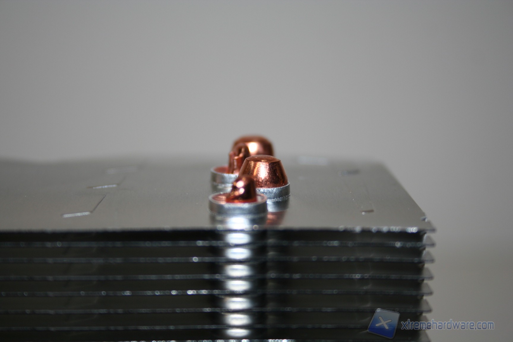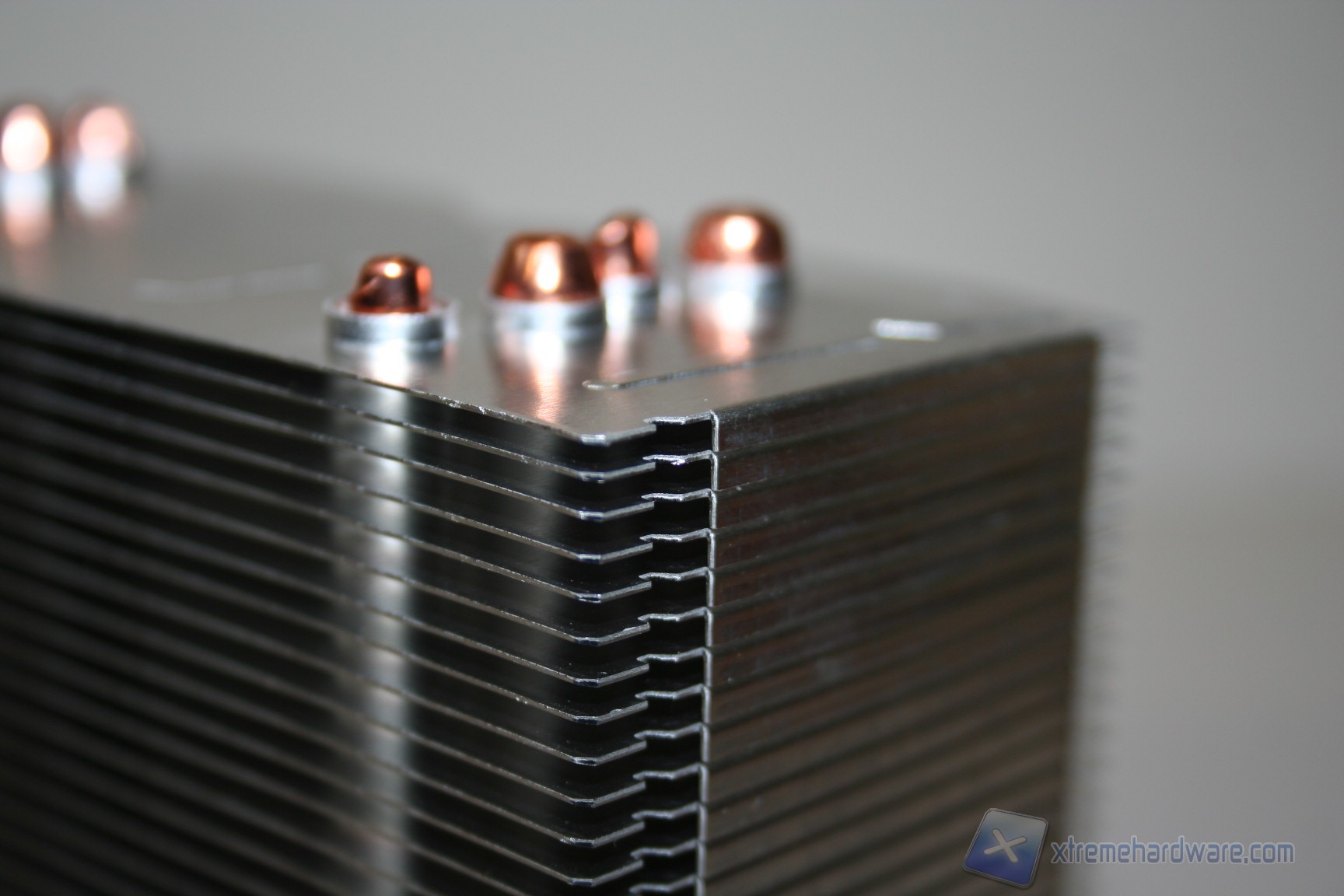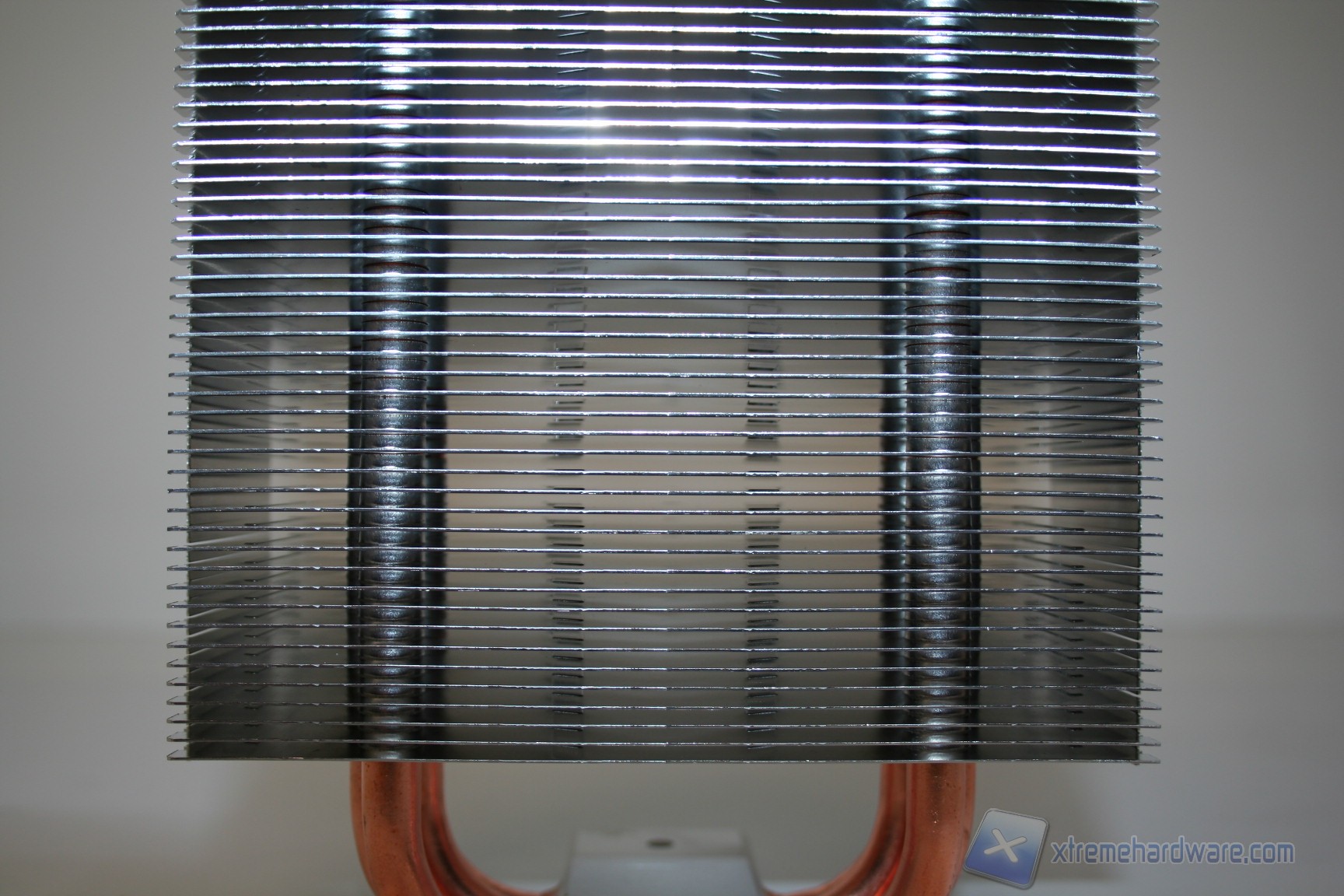 Come abbiamo accennato poco fa il Freezer i30 è composto da 48 alette atte allo smaltimento di calore generato dalle heatpipes. La rifinitura di queste alette è molto buona ed ai lati del corpo dissipante notiamo una piegatura rientrante che tramite saldatura meccanica conferisce al Freezer i30 robustezza e solidità al contempo stesso. Possiamo notare come lo spessore seppur minimo delle alette non pregiudichi le doti dissipanti del Freezrer i30. La distanza tra un’aletta e l’altra si attesta a 2 mm.