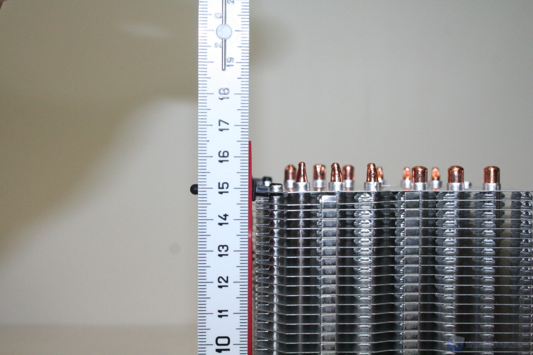 La struttura fa parte della classica tipologia a singola torre di raffreddamento, sebbene però in questo caso abbia una elevatissima profondità. E’ costituito da un unico corpo dissipante attraversato da 6 heatpipes ad “U” con diametro di 6mm, distribuite in fila lungo la direzione del flusso d’aria, quindi sovrapposte. Al centro sono presenti dei motivi che conferiscono un aumento della superficie dissipante (necessaria per migliorare il profilo di ventilazione interno in associazione alla zona morta di ventilazione, derivante dal diametro elevato del motore), ed anche due fori per l’installazione, uno dei quali all’interno dei plate sovrapposti, il che implica che per l’installazione sarà necessario un cacciavite a testa molto lunga. Vi mostriamo una fotografia del cacciavite che consigliamo di utilizzare:
