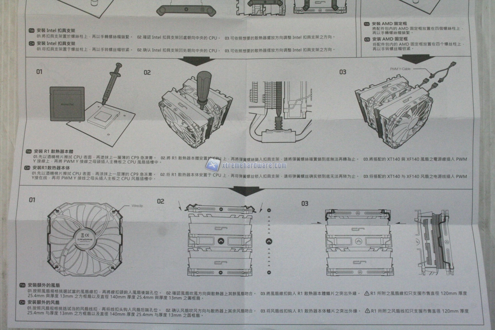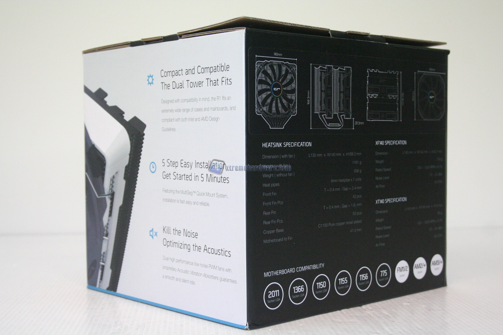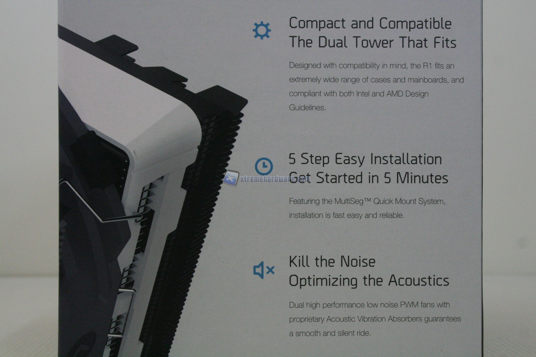 La confezione esterna è davvero molto curata, si caratterizza per un elevatissimo numero di informazioni ed è evidente l’intezione di farlo risaltare tra la concorrenza. Poco male, a noi interessa il contenuto e l’imballo. Quest’ultimo è eccellente, al punto che siamo rimasti addirittura stupiti per alcune finezze tra cui la scatola delle componenti separata dal resto ed anche delle carte plastificate con cui registrare sia il dissipatore, sia la ventola che ci è stata fornita per l’analisi termica. Impressionante !