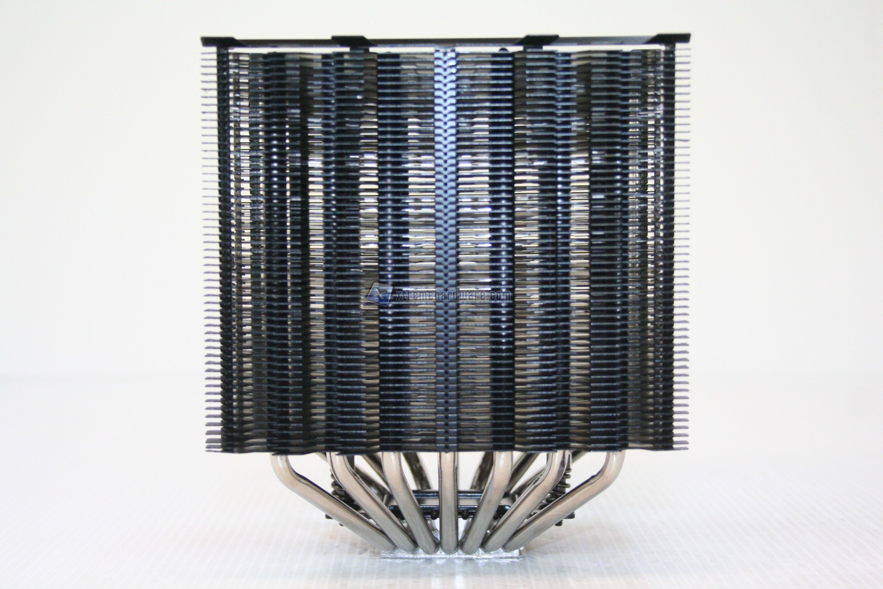 Il profilo frontale è perfettamente orizzontale ed è evidente la chiusura centrale delle alette, ed il meccanismo di saldatura sulle heatpipes. È proprio questo infatti un elemento pubblicizzato dal produttore, che prende il nome di "DirectCompress™ Soldering": incrementa la superficie di scambio tra le heatpipes e le alette del radiatore, conferisce infatti un’Area maggiore del 10% rispetto alla saldatura tradizionale e quindi, ovviamente, una superficie maggiore implica una dissipazione del calore più immediata.