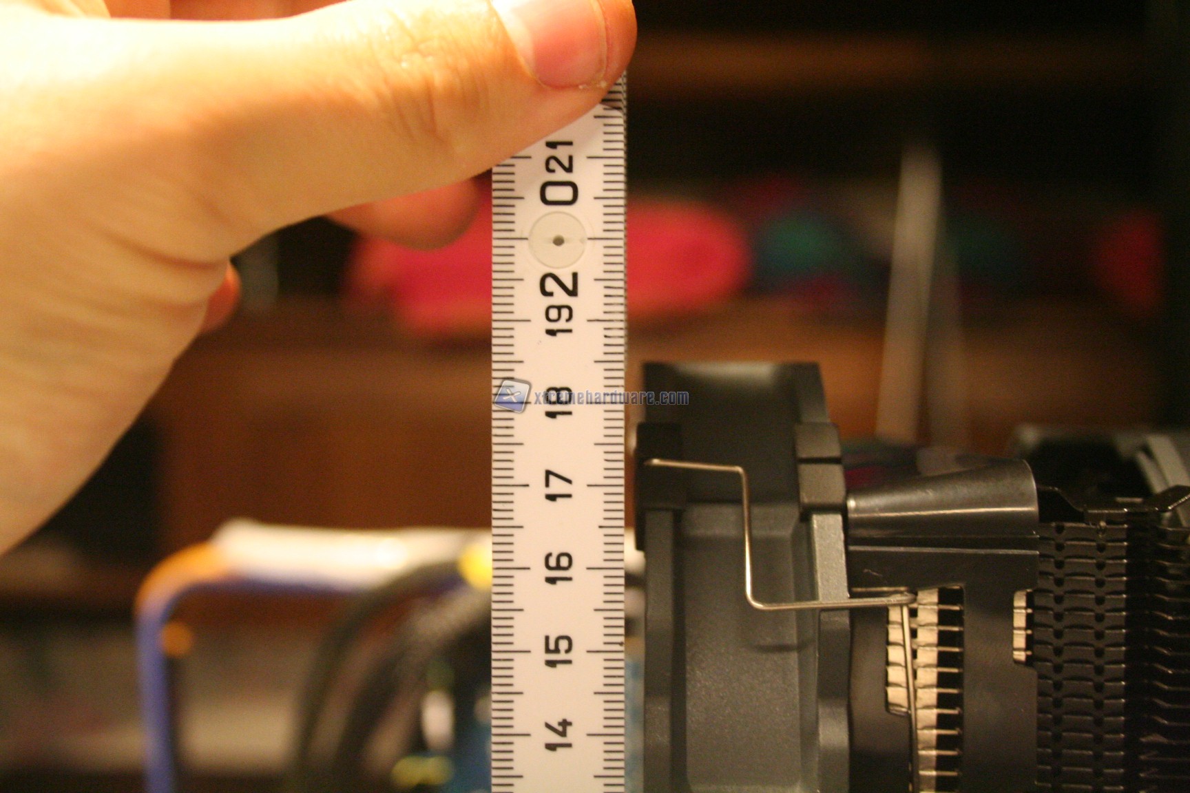 Il dissipatore presenta un’altezza della ventola non molto elevata rispetto alla scheda madre, quindi potrebbe esserci qualche incertezza nella compatibilità con schede madri aventi sistemi di dissipazione grandi, ma comunque tendiamo ad escluderlo. Un problema invece potrebbe essere l’altezza, perché con la ventola frontale arriviamo a 185mm, leggermente più rialzata, altrimenti 163mm qualora utilizzassimo una 120mm oppure la 140 ma posta più in basso, livellata alle alette superiori. Lo standard di progettazione dei case Mid Tower è 160mm, quindi sarà consigliabile premunirsi di un case che sia all’altezza (ed è proprio il caso di dirlo !).