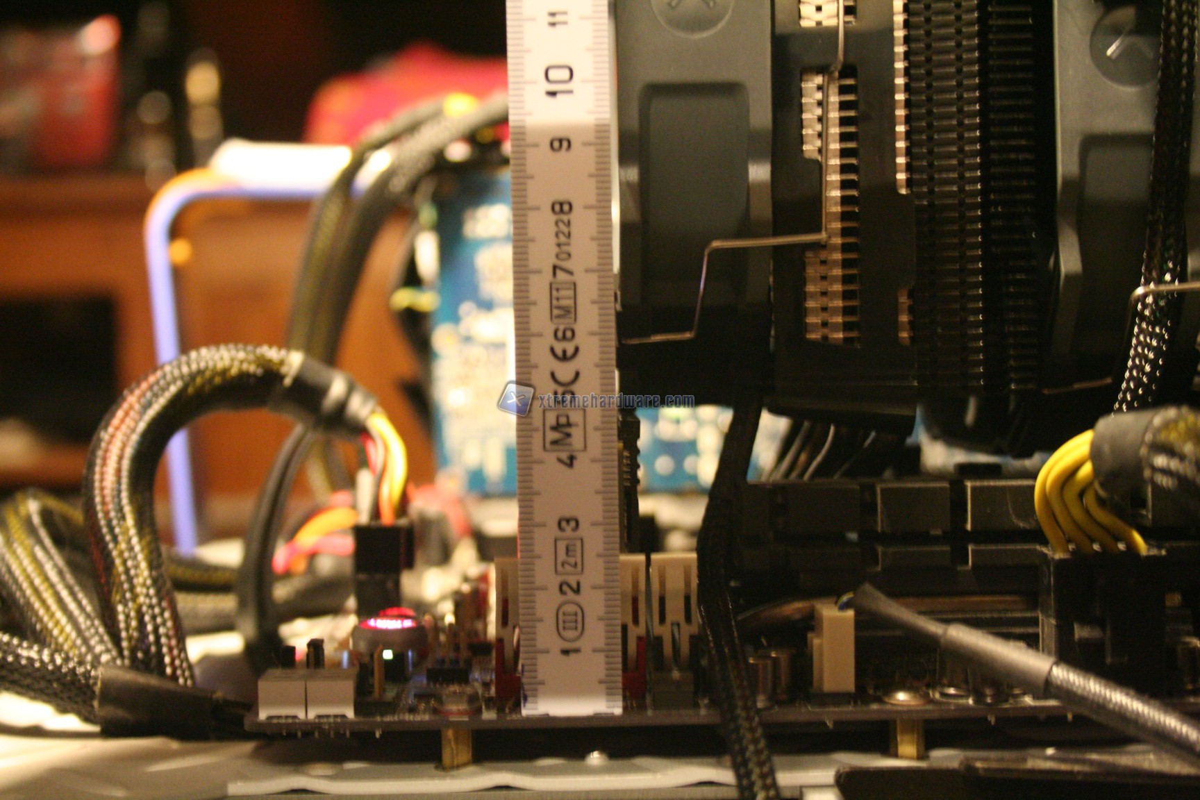 La compatibilità con RAM ad elevato profilo purtroppo con piattaforme 2011, grazie allo spessore standard della ventola frontale da 25mm, è bassa. Per dissipatori a doppia torre però dobbiamo ammettere che abbiamo visto di peggio.
