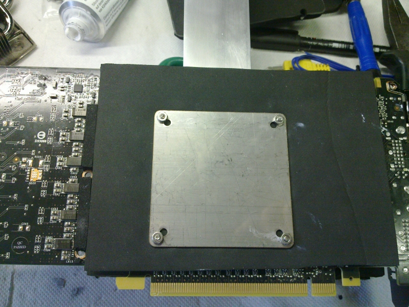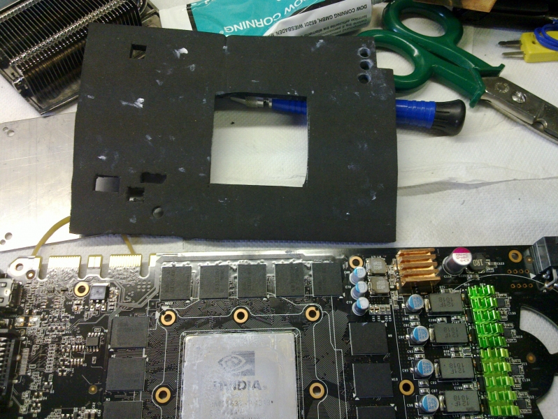 Il tolotto è stato montato e testato su una PNY GTX 480. Il montaggio è stato relativamente semplice, con tutti i pezzi che si incastrano alla perfezione. Unicà difficoltà è stata trovata con le viti più sottili, che ci sono sembrate leggermente corte: avvitare i bulloncini sul retro della scheda, con in mezzo la coibentazione in neoprene, non è stato facile. Lo spessore massimo di neoprene che si riesce a installare per poi poter avvitare i dadini è di circa 3-5mm.