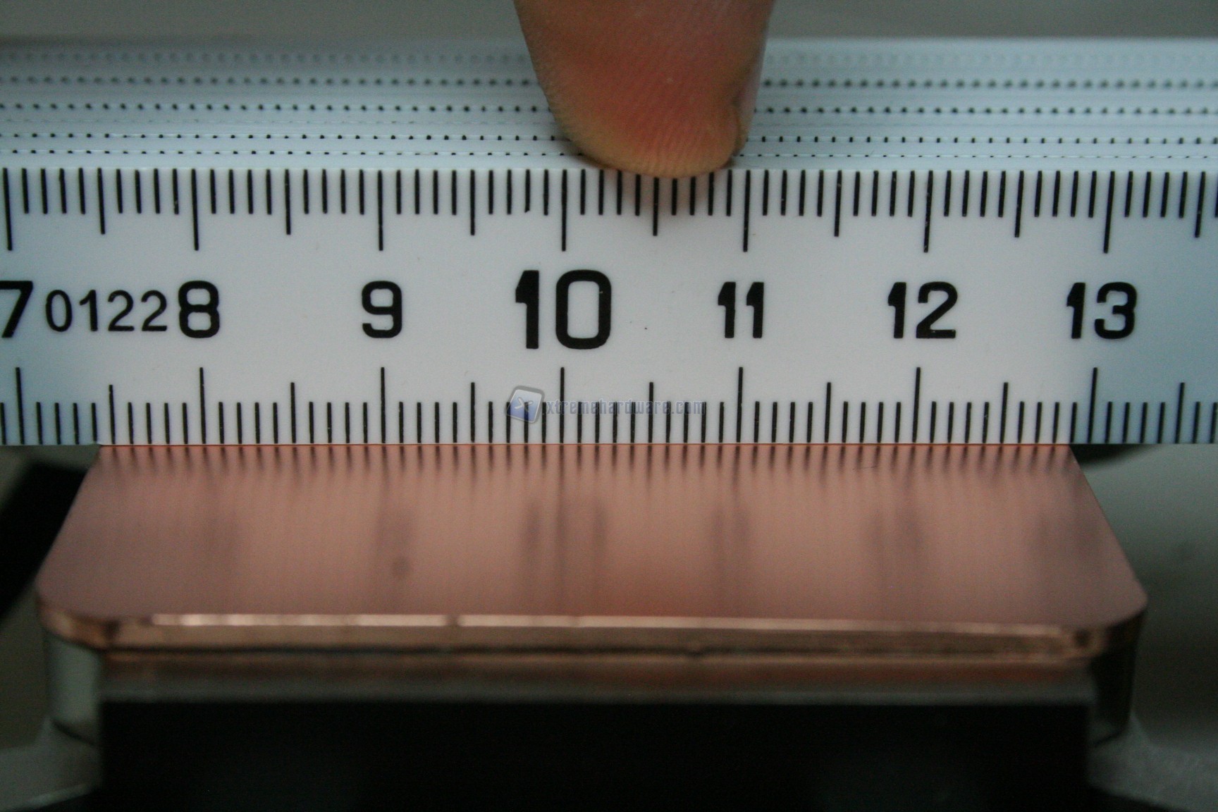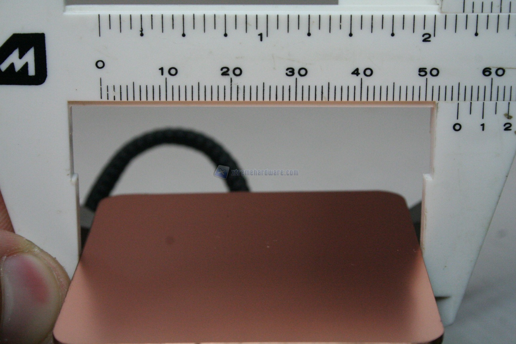 Non presenta della pasta termica preapplicata ed il contatto sarà ottimo, come potete notare nella fotografia seguente (vi mostriamo anche delle misurazioni accurate della base):