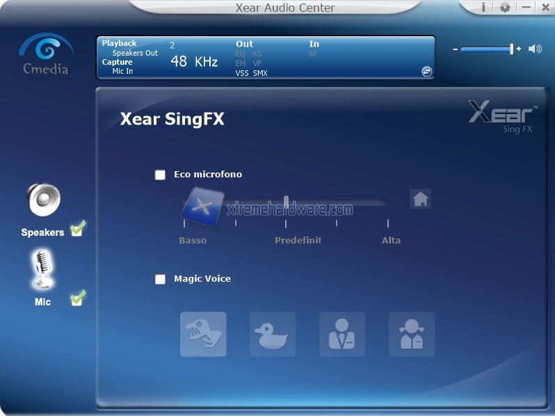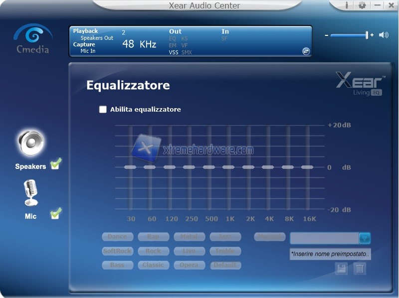 Nel ‘’Menù’’ Speaker potremo accedere alle varie personalizzazioni di campionamento, equalizzazione, virtualizzazione, sound effect e cosi via. La modifica è immediata e di facile comprensione vista anche la localizzazione in italiano del software.