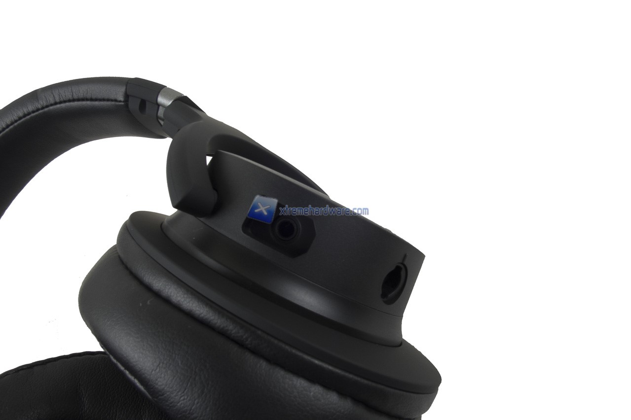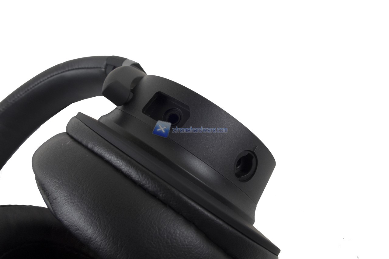 Il padiglione di sinistra ci mostra gli ingressi da 3,5 mm per microfono e cavo di collegamento o diretto a dispositivi mobile o tramite splitter a Y al PC. Nel caso dell’ingresso del microfono abbiamo senso obbligatorio e quindi non potremo inserirlo in modo errata.