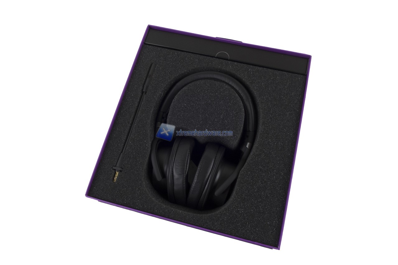 Sollevando il coperchio possiamo vedere come le cuffie e il relativo bundle sia tutto ben riposto e protetto da un rivestimento e forma in gomma espansa.