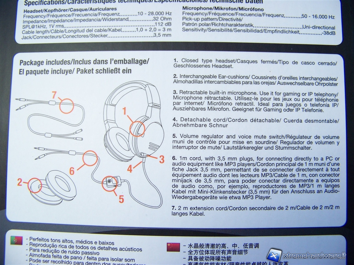 Una volta aperta anche questa copertura ci troviamo di fronte all'headset, ai cavi di collegamento con tanto di prolunga, ad un paio di cuscinetti auricolari di ricambio ed a due manuali utente.