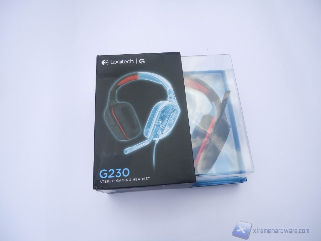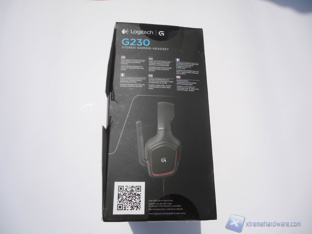 La scatola in cui sono contenute le Logitech G230 è di notevole dimensioni e di forma squadrata. Frontalmente troviamo il nome del prodotto oltre ad una finestra di grandi dimensioni che permette all’utente di osservare il prodotto prima dell’acquisto.