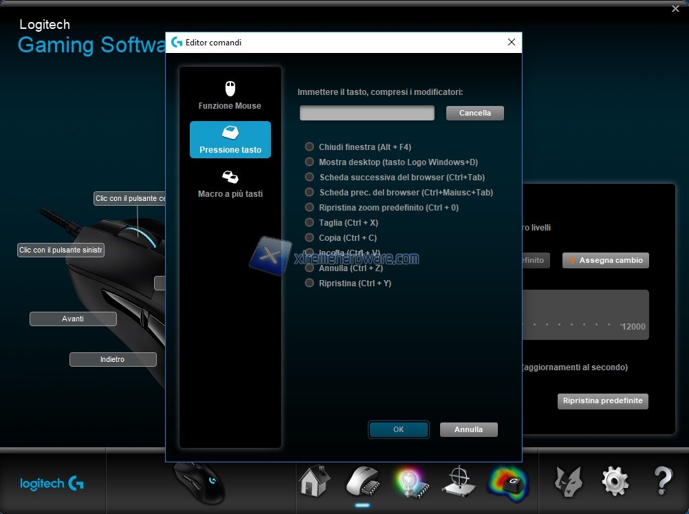 A seguire abbiamo l’icona del mouse che ci aprirà le porte della personalizzazione di profili DPI e assegnazione tasti. Logitech da sempre permette di attivare o meno tutti i profili e relativi DPI. Impostazione del Polling Rate presente.