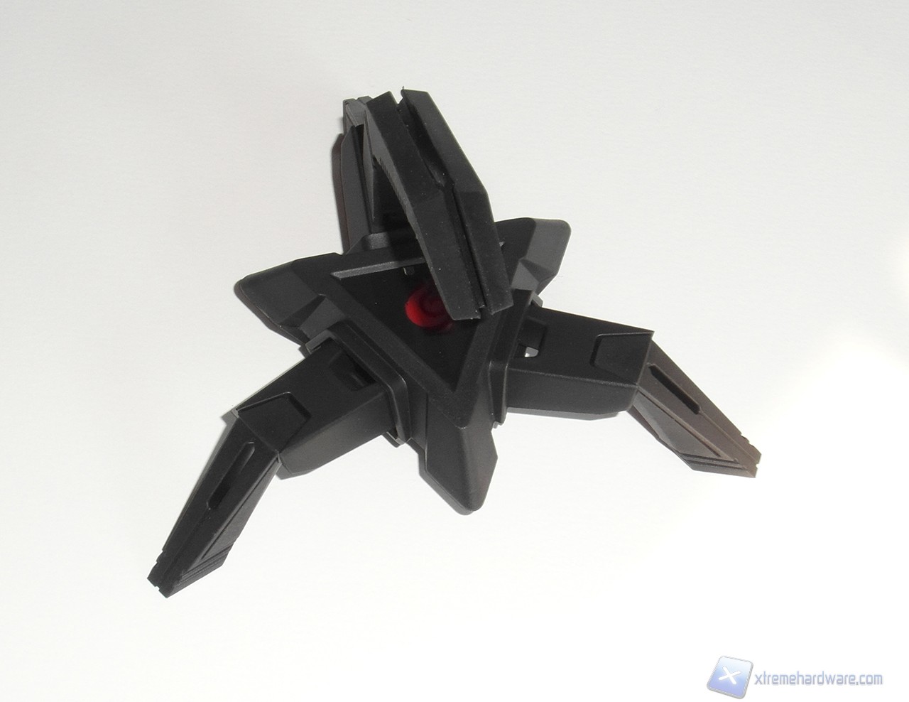 Il corpo e le “zampe” sono realizzati in plastica rigida nera, con finitura bucciata, mentre il braccio è realizzato in gomma particolarmente flessibile.
