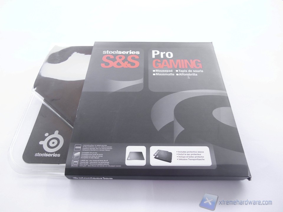 SteelSeries ci ha fornito per questa review il mousepad S&S, un mousepad semirigido dalle caratteristiche molto buone. La scatola del mousepad è molto semplice ed è costituita da una protezione in plastica trasparente chiusa da un cartoncino che illustra le features del prodotto.