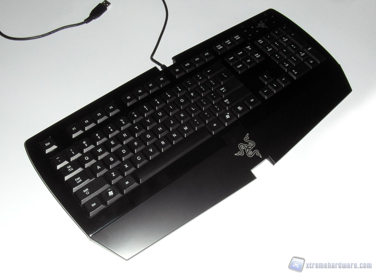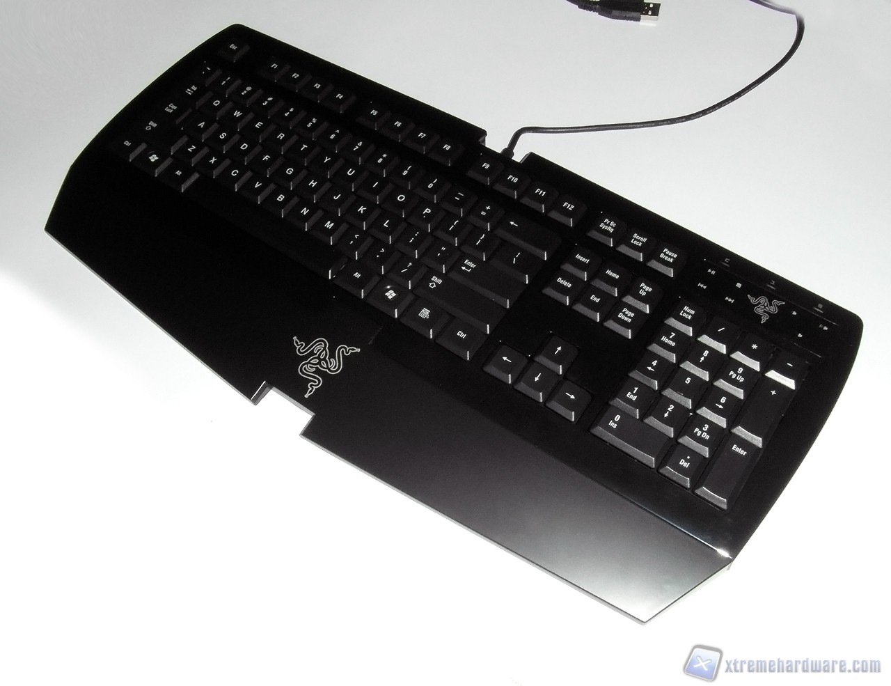 La parte superiore in plastica nera lucida e il poggia polsi con il particolare profilo rendono molto gradevole la tastiera Razer alla vista, decisamente accattivante. I tasti sono caratterizzati da un profilo più basso rispetto al solito, e sono di tipo Hyperesponse, questa tipologia di tasti non è molto comune nelle tastiere da gaming ma non è oggettivamente negativa.