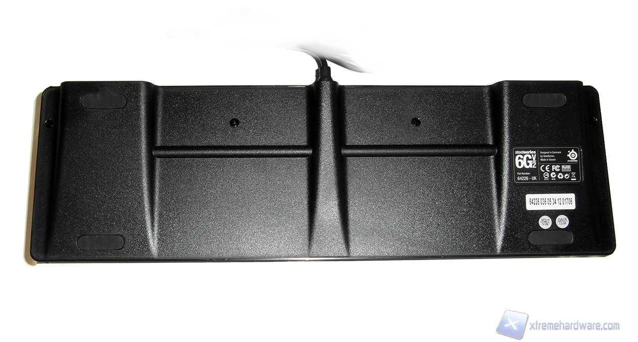 La parte inferiore si presenta compatta e senza particolari regolazioni dell’altezza, infatti sono assenti i piedini regolabili. L’assenza della possibilità di regolare in altezza la tastiera non è un grave difetto poiché già di per se la tastiera offre un buon rialzo della parte posteriore.