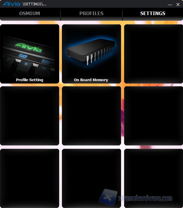 La finestra principale è dedicata alla selezione della periferica Gigabyte desiderata (nel nostro caso è connessa solo la Osmium) ma presenta anche l'accesso al forum Aivia, al sito Gigabyte nonché la ricerca di aggiornamenti software.