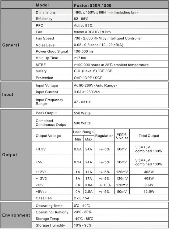 Arctic Cooling entra nel mercato degli alimentatori con i modelli Fusion 550. Il 550R è un PSU caratterizzato dalla certificazione ECO80 e da ottime caratteristiche qualitative.