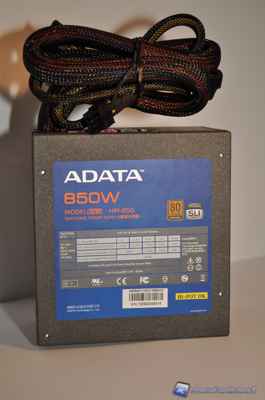 Nella parte destra del telaio troviamo una scritta A-Data in bianco su uno sfondo blu. Troviamo inoltre delle feritoie in direzione dei condensatori presenti nella zona di bassa tensione. Nel lato sinistro invece è impressa in bassorilievo la scritta A-Data.