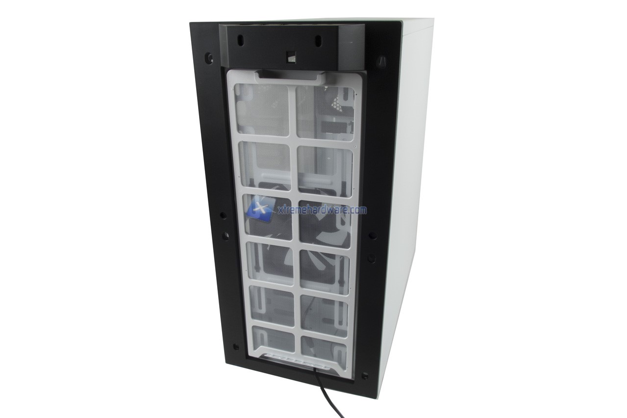Il frontale in plastica potrà comunque essere rimosso con estrema semplicità per poter accedere al filtro antipolvere magnetico removibili e successivamente al frame ove avvitare le viti per le singole ventole o con relativo radiatore fino a 360 mm.