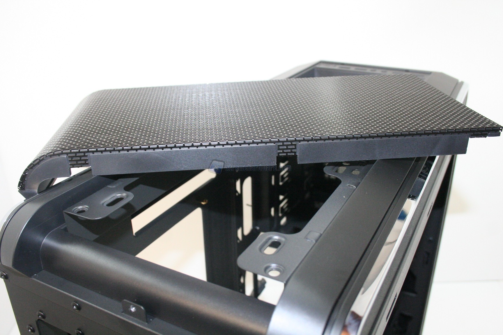 Nella parte superiore, aperta e liberamente accessibile dall’alto, troviamo la porzione I/O del case; posteriormente a quest’ultima troviamo una porzione coperta da un pannello a scomparsa.