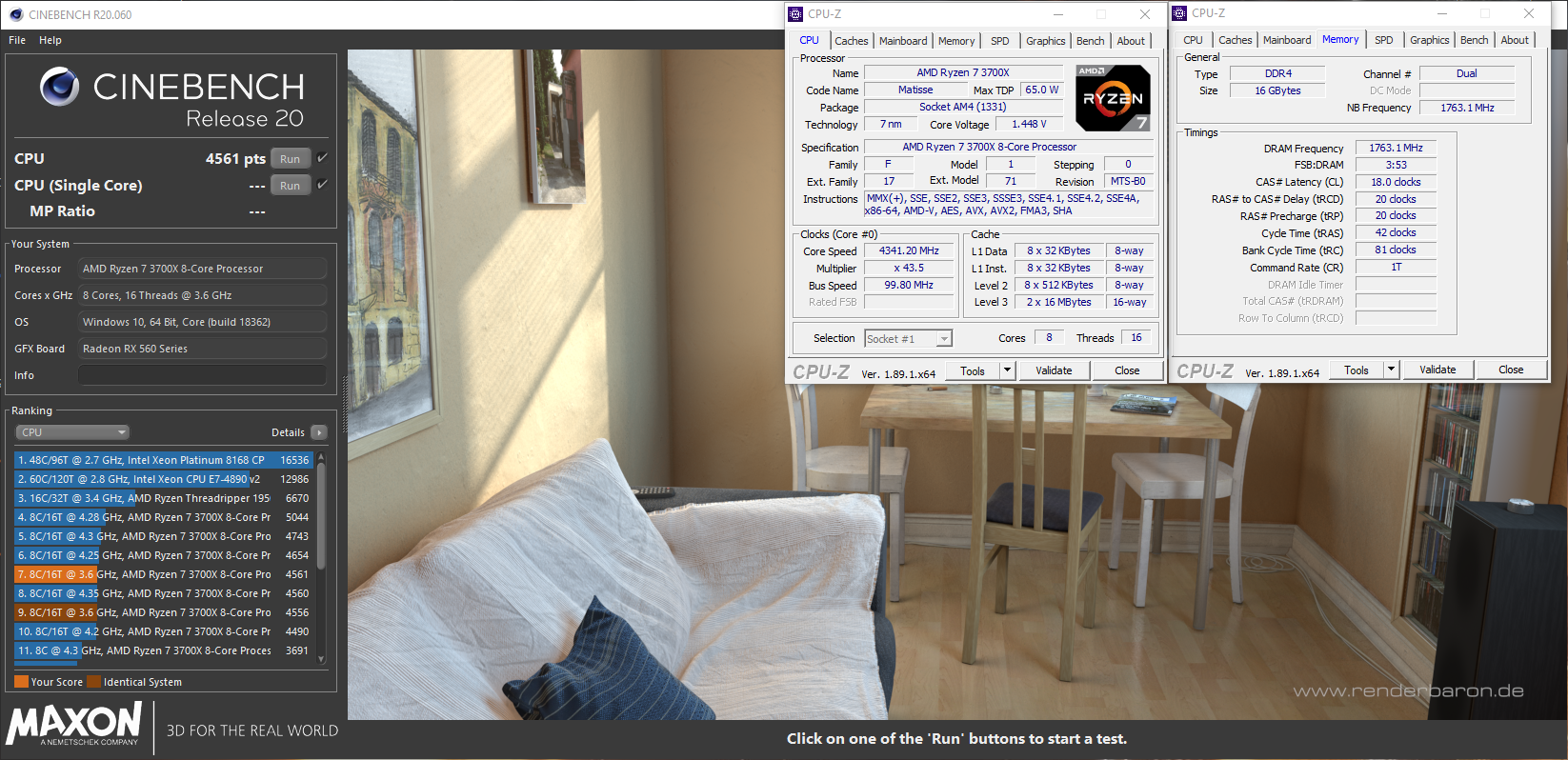 Siamo riusciti a portare le memorie ad una frequenza di poco superiore a 3500MHz con la quale siamo riusciti a benchare senza problemi Sandra ed a chiudere il Cinebench, il sistema con questa configurazione risulta stabile.