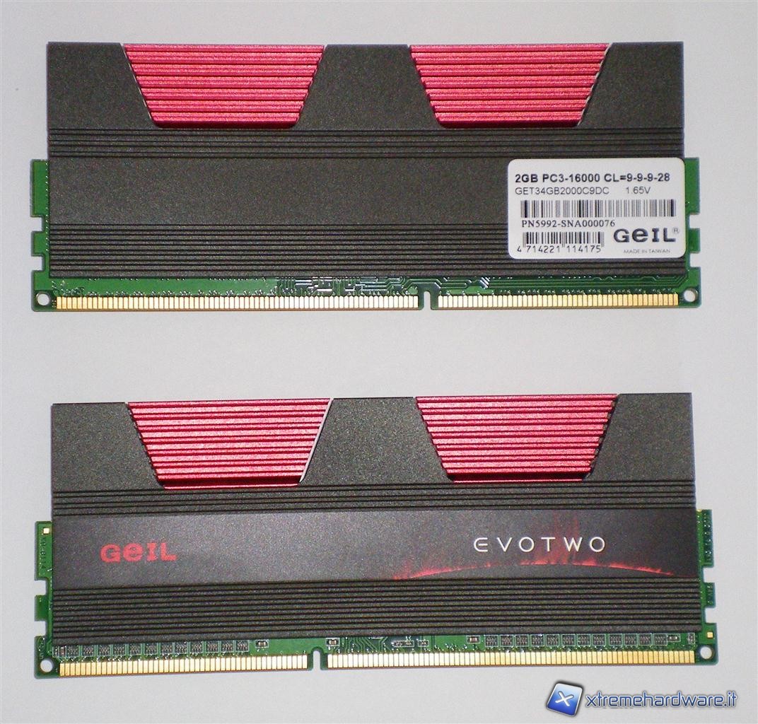 La serie GEIL Evo Two presenta varie tipologie di memorie adatte ad una vasta gamma di utenti, troviamo infatti kit dual channel e triple channel, cin moduli di 2, 3, 4 e 6 moduli di memoria. In particolare le configurazioni a 3 e 6 moduli sono state pensate per essere usate specificamente in abbinamento a processori Intel della serie Core i7-900, dotati di schede madri socket 1366 LGA e controller di memoria di tipo triple channel. Il resto delle memorie sono invece compatibili sia su piattaforme AMD socket AM3/AM2+ sia su piattaforma Intel socket 775 LGA e socket 1156 LGA. Inoltre hanno delle caratteristiche molto avanzate che vedremo di seguito. Geil ha denominato le configurazioni a 4 e 6 moduli quad-channel ed hexa-channel, piuttosto fuorviante per l'utente in quanto, almeno allo stato attuale, non esistono memory controller di questo tipo. L’intera gamma di memorie GEIL EVO Two è possibile trovarla ai seguenti indirizzi web a seconda della tipologia scelta: