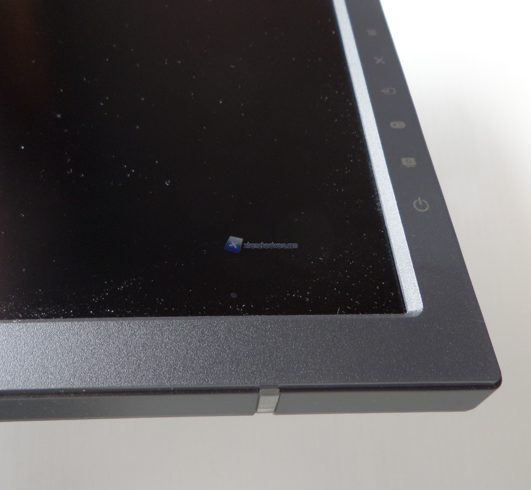 Sulla base, la quale non presenta LED, vi sono riportati dei segni per poter riposizionare il monitor in posizione perfettamente frontale.