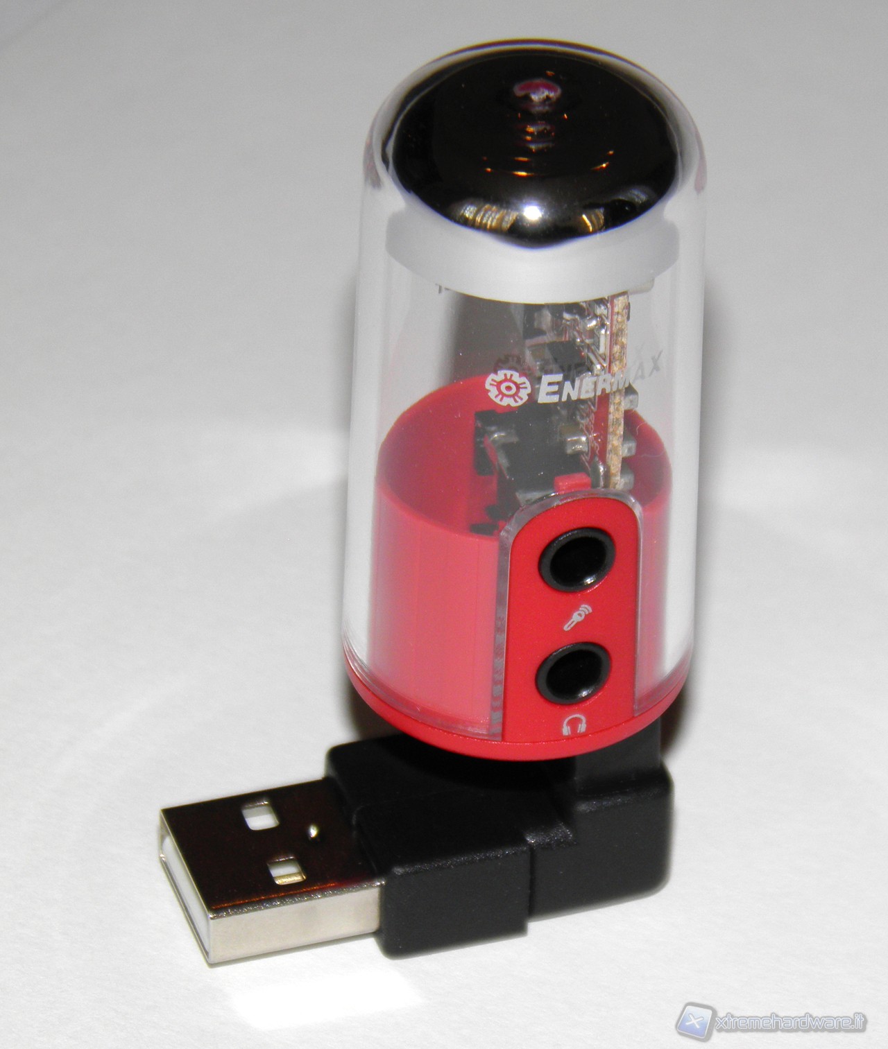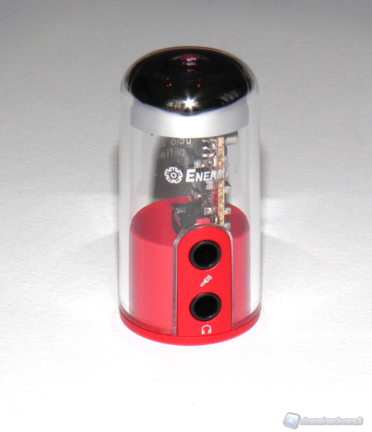 Parlando invece di aspetti più oggettivi, l'Enermax DreamBass Genie risulta davvero di dimensione estremamente contenute, la plastica trasparente lascia vedere la scheda elettrica, dove alloggia il chip audio USB VIA VT1620A e gli altri component.