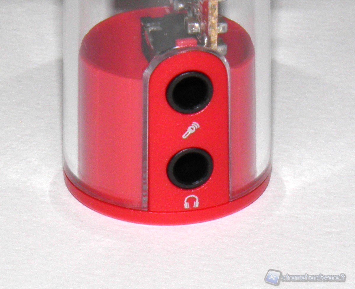 Tornando al nostro prodotto, nella parte anteriore sono presenti i due connettori per jack da 3.5mm in cui potremo collegare le nostre cuffie o altoparlanti e il microfono.