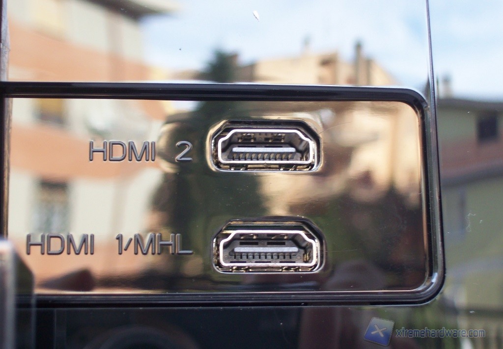 Posteriormente l’i2757Fm ha una copertura nera lucida e il braccio di regolazione separa le connessioni presenti. Da una parte troviamo la porta video analogia D-Sub, l’uscita jack audio per le cuffie, l’ingresso jack audio e la connessione per l’alimentazione. Dall’altra parte invece figurano le due porte HDMI, di cui una MHL. I due speaker, da 2W ciascuno, sono posizionati proprio sopra le connessioni.