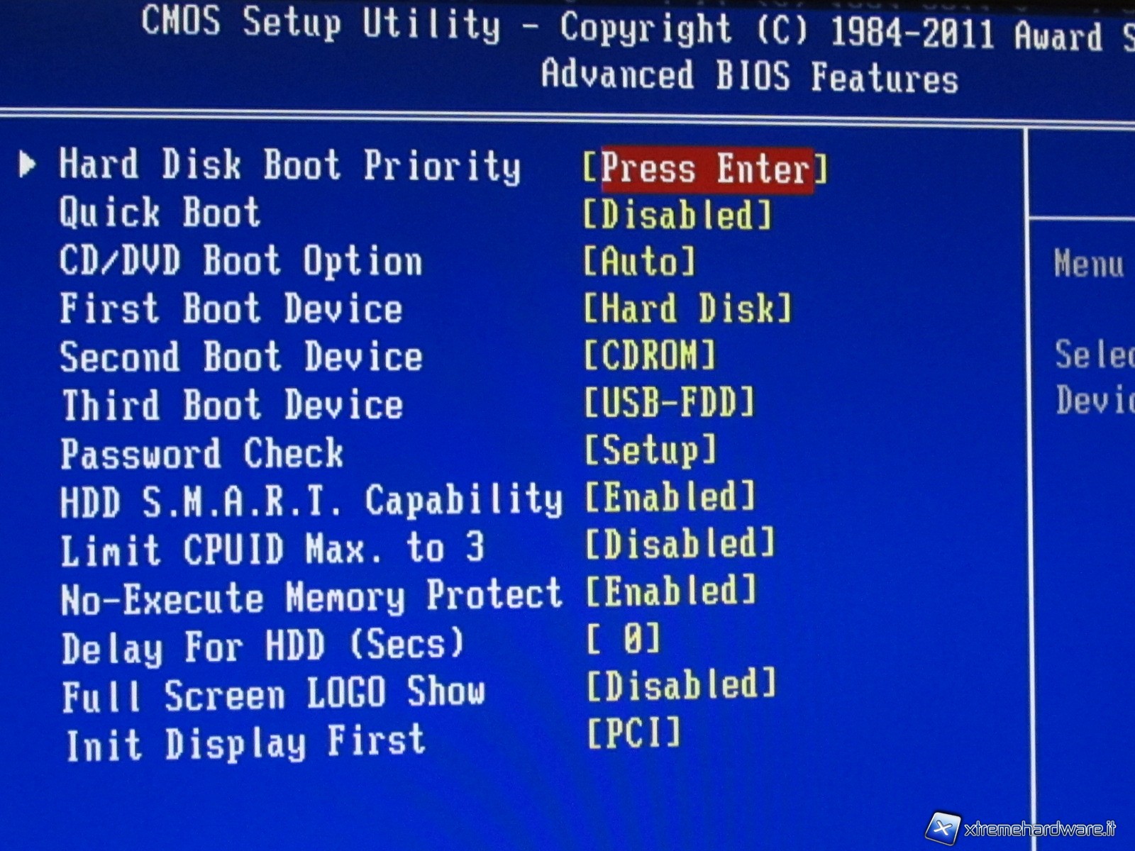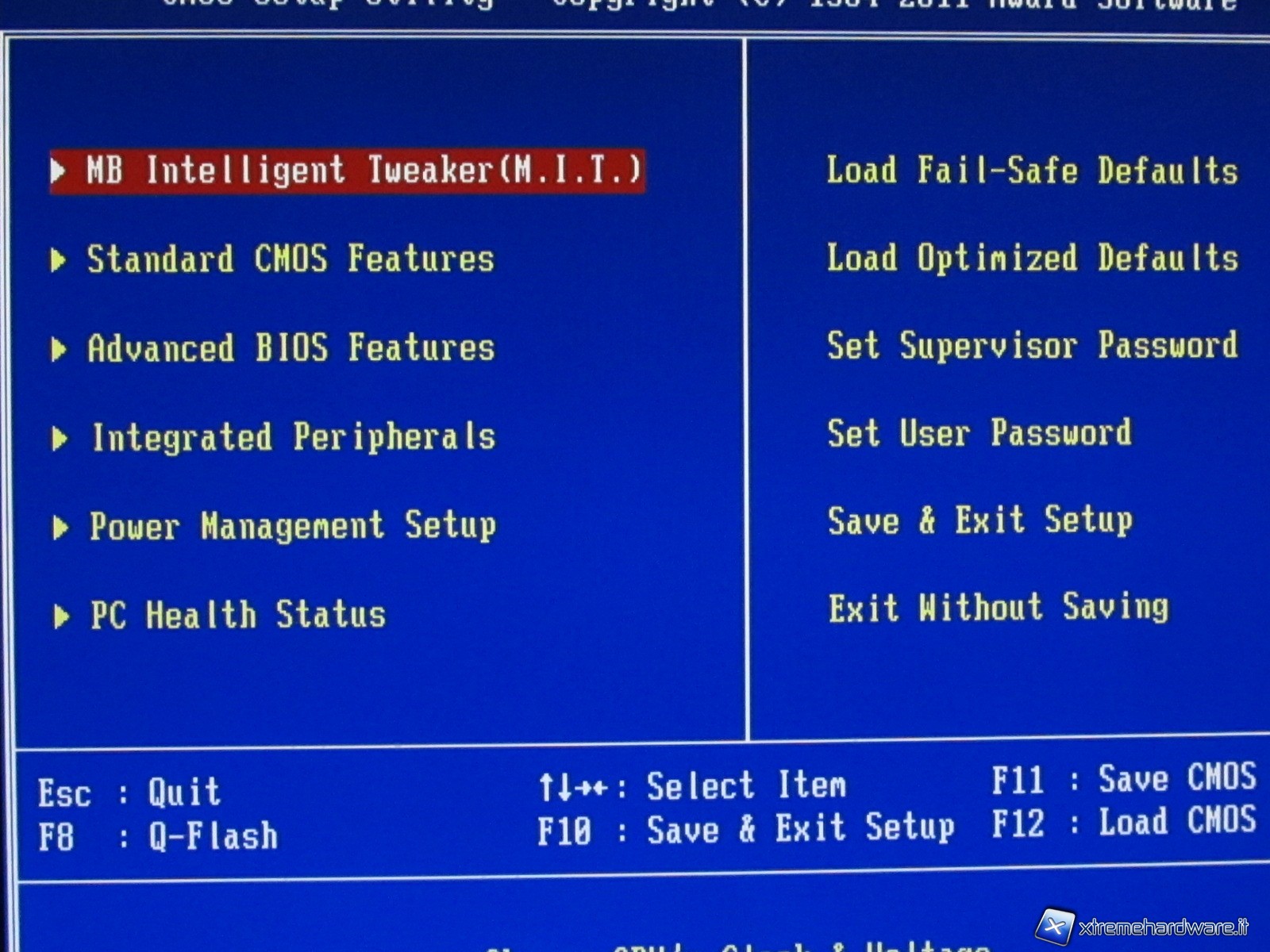 Il BIOS è prodotto dalla AWARD ed è di tipo tradizionale, quindi non comprende le opzioni grafiche dell’UEFI e nemmeno supporta l’utilizzo del mouse in ambiente BIOS; in ogni caso il BIOS risulta essere particolarmente ricco di opzioni che consentono all’utente di gestire qualsiasi cosa.