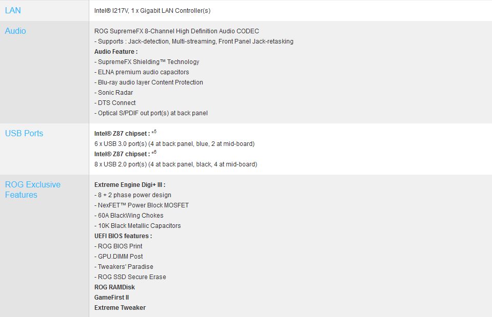 ASUS MAXIMUS VI HERO, l’eroina di classe ROG - Specifiche tecniche Indice articoli ASUS MAXIMUS VI HERO, l’eroina di classe ROG Uno sguardo a Lynx Point Caratteristiche esclusive principali Specifiche tecniche Packaging e primo contatto Analisi del layout BIOS Sistema di prova e Metodologia di test Test Sintetici Test Compressione Dati e Multimedia Overclock Consumi Conclusioni Tutte le pagine View Comments Pagina 4 di 13 Specifiche tecniche Di seguito gli screen relativi alle specifiche di prodotto, disponibili anche sul sito del costruttore. << Indietro Avanti >> View the discussion thread. back to top
