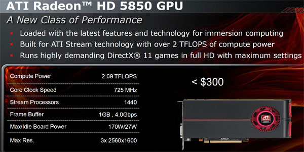 Secondo Amd, questa Gpu Ati è destinata al segmento "Class performance" del mercato, infatti troviamo per il modello HD5850 un prezzo inferiore ai 300 dollari USA, di fatto andando a ricoprire una fetta di mercato medio alta.