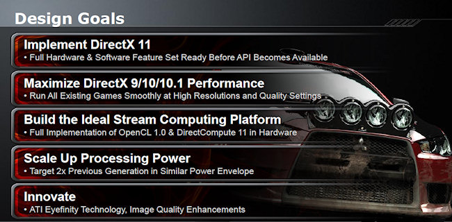 Facciamo un breve cenno, ancora una volta, sulla nuova famiglia di schede video introdotte dalla divisione schede video ATI di AMD. Nel mese di ottobre 2009 Microsoft ha commercializzato il suo nuovo sistema operativo Windows 7, questo sistema operativo ha introdotto tante novità, ma la cosa che più ci interessa per quanto concerne il settore gaming è l'adozione delle nuove librerie grafiche DirectX 11. Nello stesso mese AMD ha presentato le nuove schede grafiche che si basano proprio su queste ultime librerie.