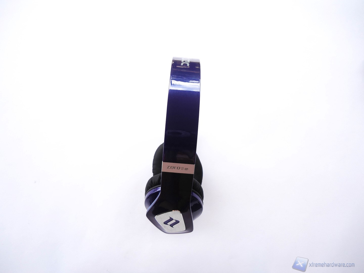 I padiglioni delle cuffie sono molto piccoli come per tutte le cuffie sovraurali. Nella parte esterna troviamo il logo Noontec incastonato al centro di una placchetta argentata che al tatto ci sembra essere metallo spazzolato mentre nella parte interna abbiamo l’altoparlante chiuso all’interno di un’imbottitura molto generosa e rivestita in pelle. Anche in questo caso l’imbottitura si può togliere e lavare. I padiglioni sono basculanti sia in verticale che in orizzontale e permettono alle cuffie di adattarsi perfettamente a quasi tutti gli utenti. Rispetto alle Zoro prima edizione quest’ultime cuffie presentano un altoparlante completamente rinnovato, il Votrik HD400, che garantisce un miglioramento delle prestazioni su tutte le frequenze rispetto al precedente modello.