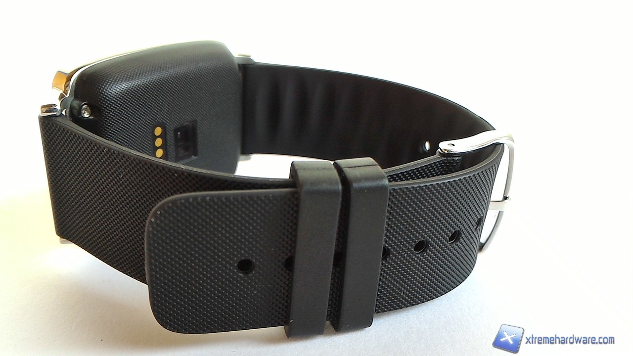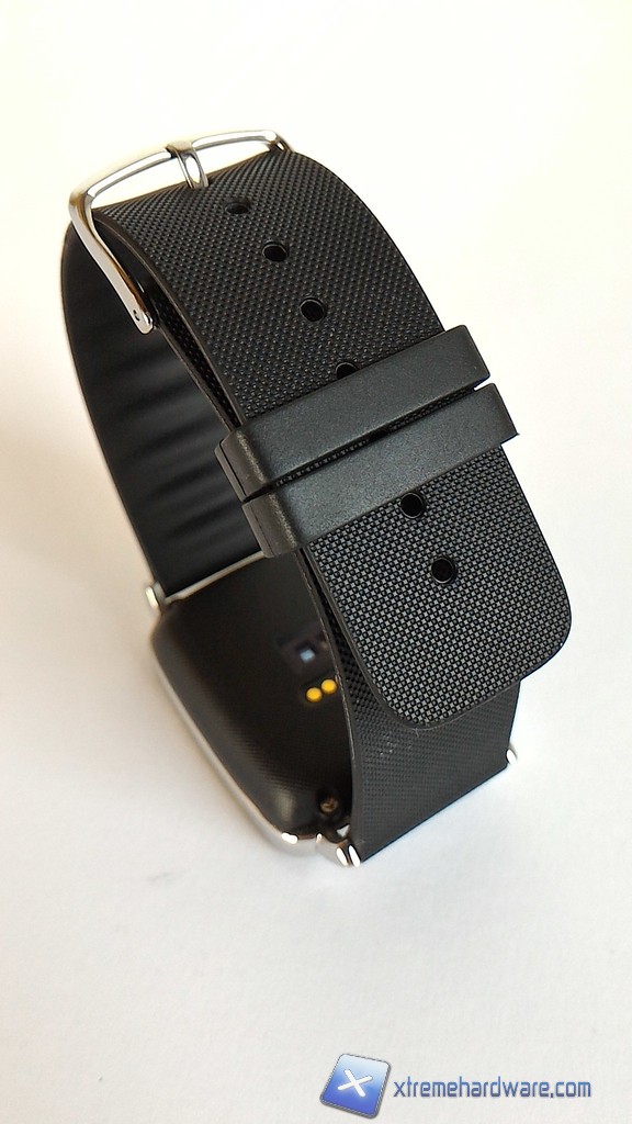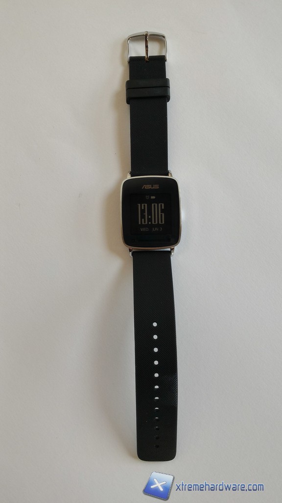 Il cinturino è realizzato in gomma ben sagomata, la qualità di questo componente tuttavia appare leggermente inferiore rispetto a quella del quadrante. La fibbia di chiusura è anch'essa in metallo in modo da riprendere il motivo estetico del quadrante, la chiusura è solida e piuttosto buona. Asus ha inoltre installato un LED di notifica speculare rispetto al logo Asus sul frontale; il LED svolge funzioni utili in quanto è associato al cardiofrequenzimetro e a vari "allarmi" provenienti dallo smartwatch come la sveglia o eventuali reminder all'attività fisica.