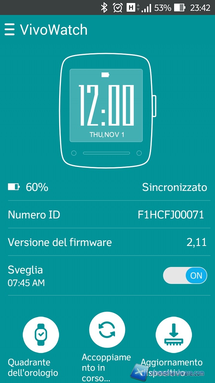 Andiamo ora a vedere come funziona il collegamento tra l’Asus Vivowatch ed un generico smartphone Android. Asus ha rilasciato sul Play Store l’app chiamata HiVivo, basta quindi attivare il Bluetooth del telefono ed avviare l’apposita applicazione; durante il tutorial iniziale viene eseguita la sincronizzazione tra smartphone e Vivowatch in modo che i dati relativi ad attività fisica e riposo siano disponibili anche “offline”, senza dover per forza consultare l’orologio. ASUS ha realizzato un'App anche per iOS, pertanto potremo utilizzare il Vivowatch anche in abbinamento ad un iPhone. Per la lista dei dispositivi compatibili, rimandiamo alla pagina di supporto ASUS.
