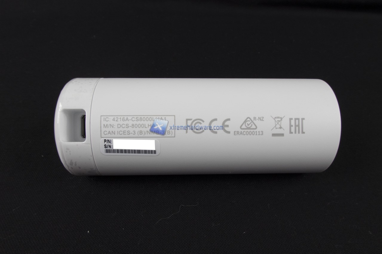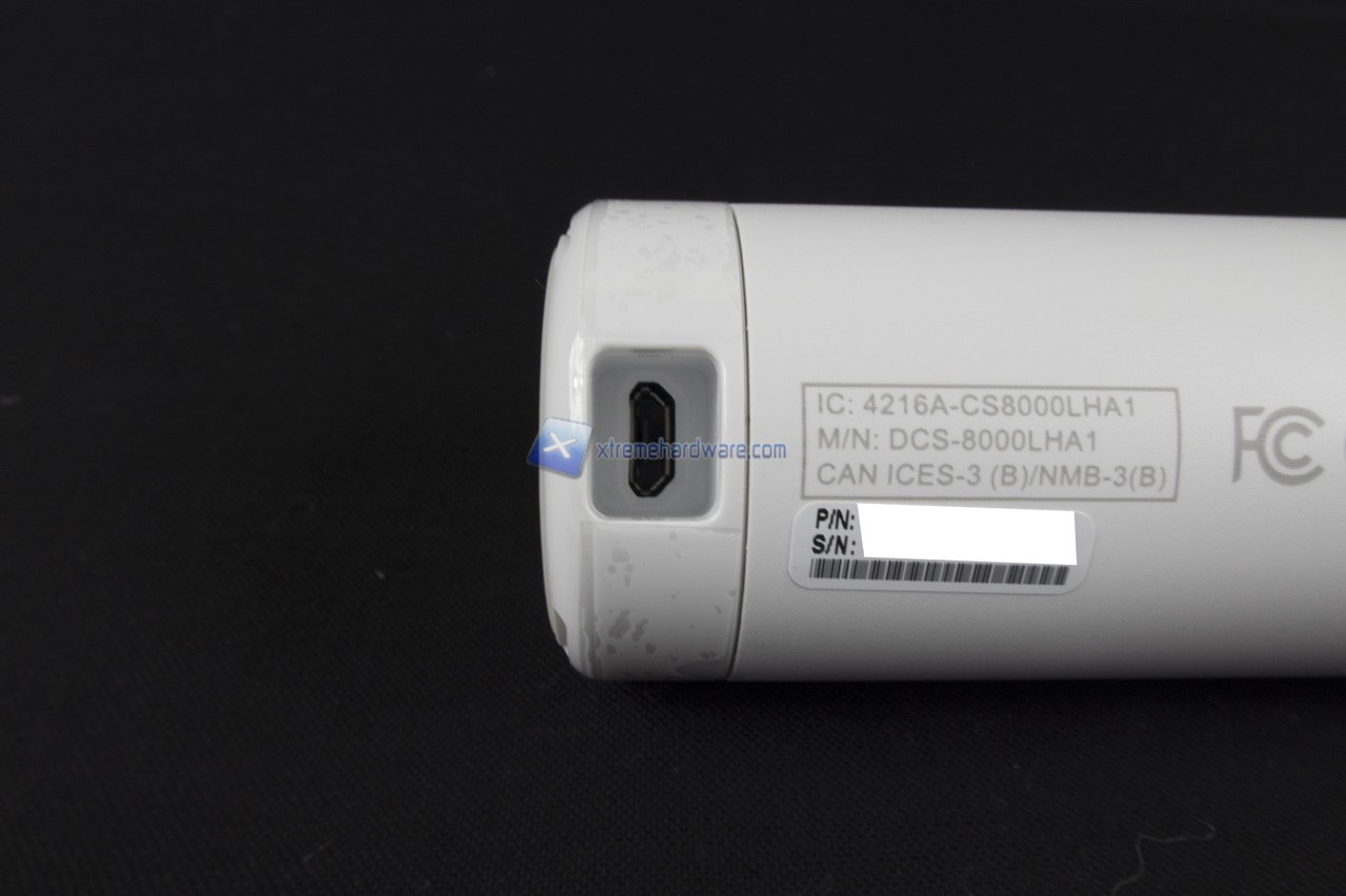 Dettaglio dell’ingresso per il cavo Micro-USB. Purtroppo per far funzionare la D-Link DCS-8000LH questa dovrà essere sempre essere connessa all’alimentatore da parete. Da notare inoltre la totale assenza di un tasto per poterla accendere o spegnere. Per qualcuno potrebbe essere un aspetto negativo seppur sono prodotti da utilizzare H24.