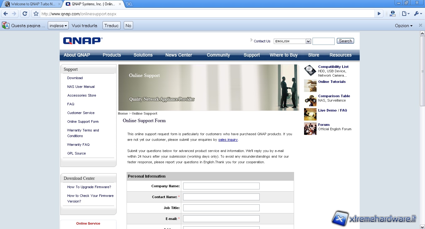 Attraverso questa funzione si apre un’altra scheda nel browser web che ci porta direttamente al supporto online presente sul sito QNAP.