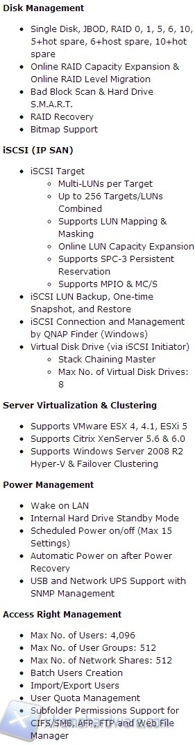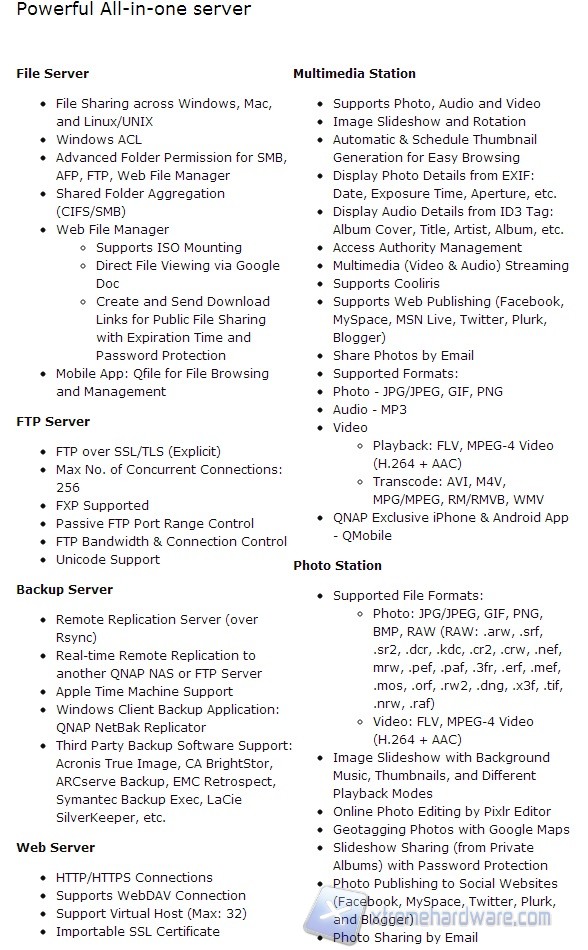 Di seguito riportiamo la tabella contenente tutte le informazioni tecniche del prodotto; ricordiamo che tali informazioni sono disponibili sul sito del produttore, a questo indirizzo (http://www.qnap.com/it/index.php?lang=it&sn=492&c=306&sc=564&t=570&n=13716&g=2)