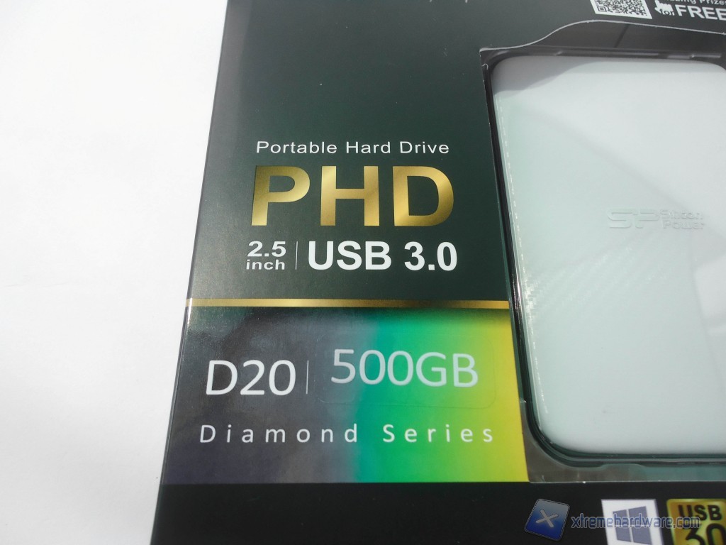 La confezione del Diamond D20 è quella tipica che Silicon Power usa per i suoi Hard Disk. La confezione si presenta di forma squadrata ed ha come colore predominante il nero. Frontalmente troviamo una finestra che ci permette di ammirare il prodotto prima dell’acquisto, di fianco a quest’ultima segnaliamo la presenza del nome del prodotto e di varie caratteristiche tecniche.