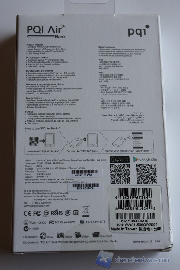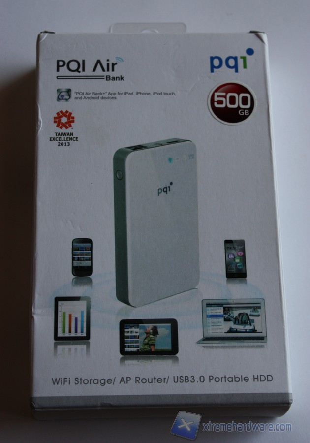 La confezione del PQI Air Bank è realizzata in cartone abbastanza resistente e di colore bianco. La parte frontale presenta numerose informazioni quali il logo dell’azienda, la capacità di archiviazione, un riconoscimento al prodotto, i dispositivi compatibili e le caratteristiche maggiori del prodotto oltre che alcune immagini stilizzate del prodotto e del suo utilizzo.